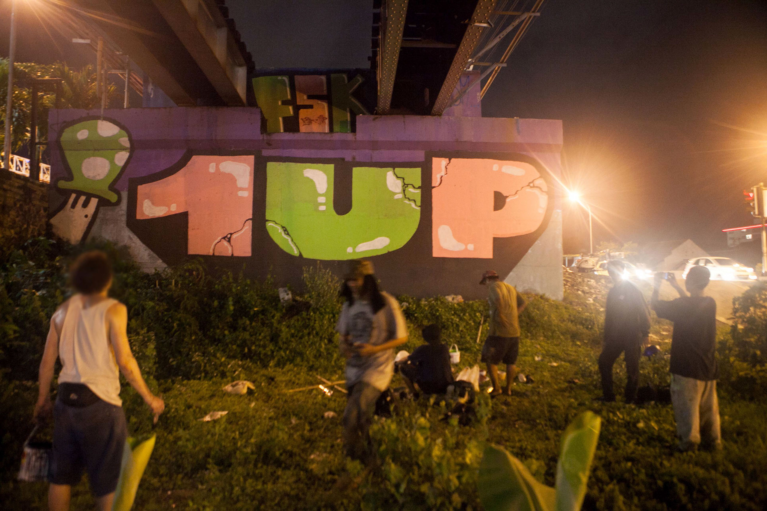 The 1UP “One United Power” crew is most famous for their worldwide graffiti actions. Street-bombings in broad daylight, whole cars in running traffic, rooftops at dizzying heights. There is a whole bunch of international artists in the crew, containing both men and women. It´s a family where “strength in unity” is the rule: One Crew, One Love, One Power.