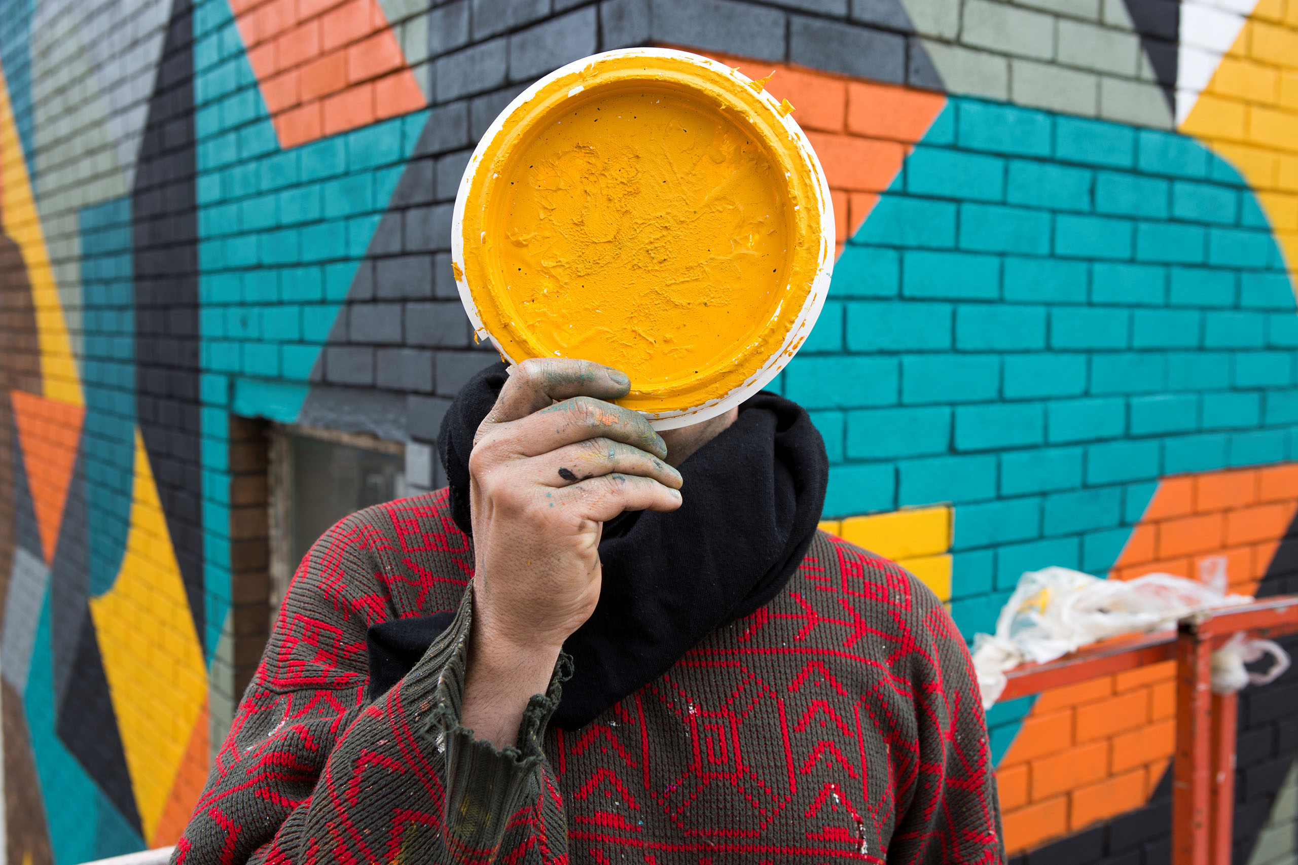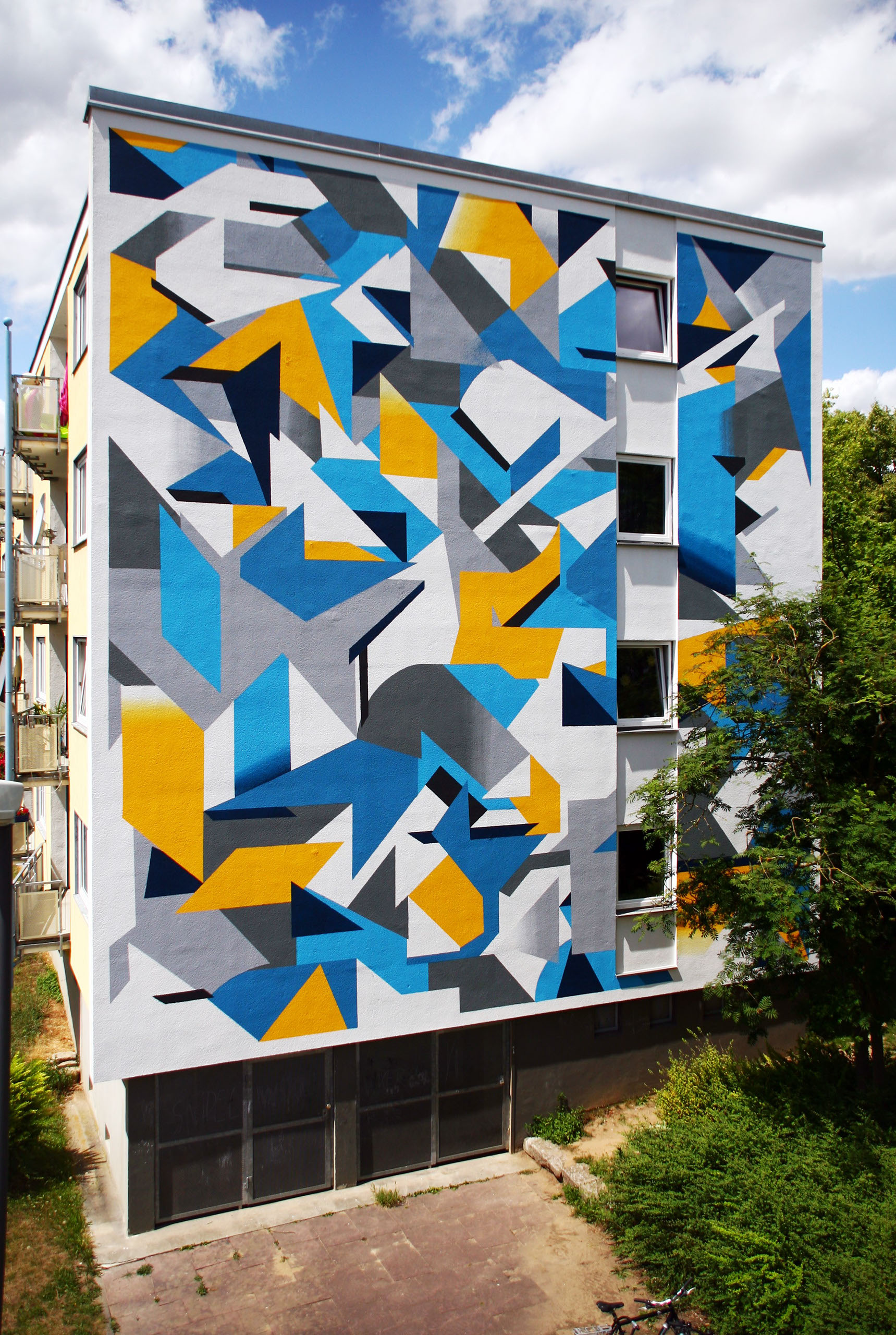 “Kera“ was born in Berlin in 1985 and has occupied himself with colors, printing techniques and facade design for over 18 years. He has always found new impulses through his love for haptic and technical things. It is especially the interconnection of working with the computer and the realization of the work on the wall that attracts the artist. The playground can never be big enough. When looking at his artwork one sees a reflection of his graphic-design studies, his passion for geometric lines and spaces as well as his many years of experience handling spray cans, wall color and brushes. His artwork is abstract but at the same time spatial. Aesthetics and graphic arts play an important role together.