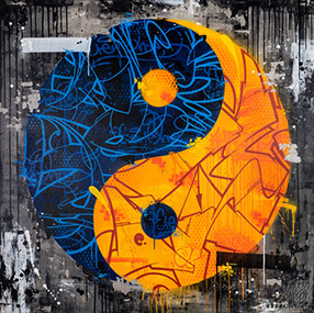 AKTEone started with his first works as a graffiti writer in 1991. He discovered a way to develop himself personally in this street art scene. The style of his art is characterized by his typography and his experimentation with colors. His work lives from its form, depth and individuality and aims to bring the viewer into the artist’s world and inspire them to dream. AKTEone is annoyed by the elitist norms of art past and present, which is why he seeks to polarize with his art.