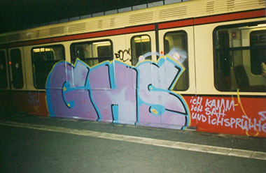 BAS2 & ROCCO aka GHS – Ghettostars is a writer crew that was founded in 1991. In the beginning, they were focused on the New York style. They are internationally known for their huge pieces. GHS is one of the last old school crews that is still active. Fresh and colorful pieces are as important as bombings in the public space. Members like WESP, KHAN and BAS2 have been writing since 1986 and have not lost their love for letterings. There are also younger members, like Rocco, who flies the flag for GHS by sending fresh trains into traffic. Or Leroy who likes it as colorful as it gets. The most important thing for GHS is the brotherhood. From the beginning the maxim of GHS has been: “One god, one mind, one crew GHS!”. The members are: WESP, ROCCO, BAS2, KHAN, DOK, LEROY, KEEN, SKUME, HULK, SOME, LEVEL, VEN1.