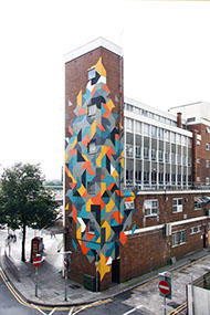 “Kera“ was born in Berlin in 1985 and has occupied himself with colors, printing techniques and facade design for over 18 years. He has always found new impulses through his love for haptic and technical things. It is especially the interconnection of working with the computer and the realization of the work on the wall that attracts the artist. The playground can never be big enough. When looking at his artwork one sees a reflection of his graphic-design studies, his passion for geometric lines and spaces as well as his many years of experience handling spray cans, wall color and brushes. His artwork is abstract but at the same time spatial. Aesthetics and graphic arts play an important role together.