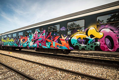 He paints the classic graffiti style with influences from New York, Amsterdam and Copenhagen.