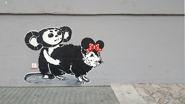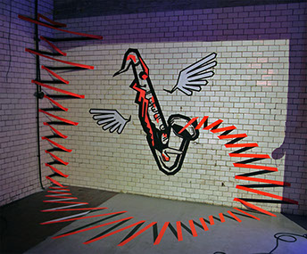 As artist, he is using the techniques of tape art, street art, stencil and spray art. In 2015 he founded the artist collective SELFMADECREW.