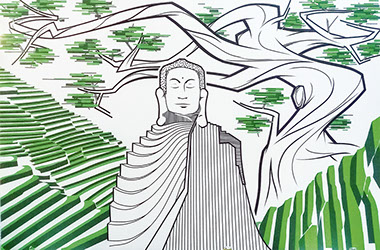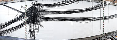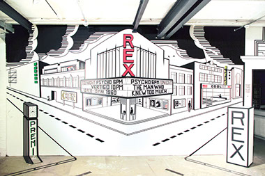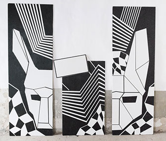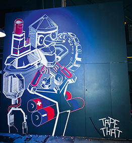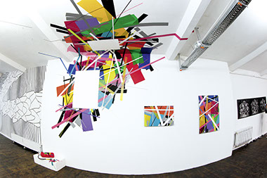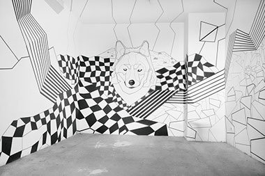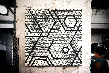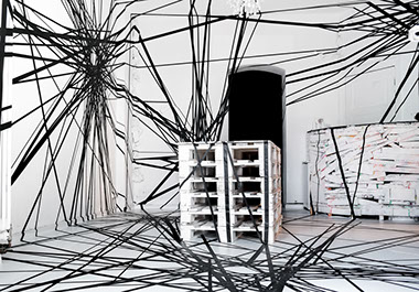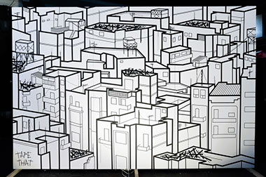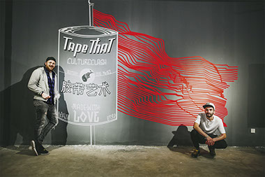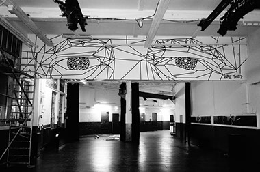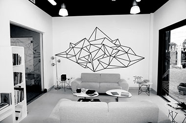 Tape That is a collective of six artists that was founded in 2011 and is based in Berlin. Their artistic roots can be predominantly found in contemporary urban art with influences from street art, graffiti and design. The works are essentially created out of adhesive tape which every member discovered independently from each other in their creative processes. Inspired by the possibility of creating something new out of an everyday object, they use tape to create complex and intricate structures or colorful tape and light installations as well as minimalistic black and white murals and room-installations. Their works can be found in a variety of places, such as underground nightclubs, abandoned buildings, showrooms and galleries. Though based in Berlin, Tape That is active all around the globe with recent and ongoing projects in Peru, Egypt, Spain, Qatar, Bulgaria, Cambodia, Vietnam, China, Luxembourg, Austria, Sweden, the US and the UK.