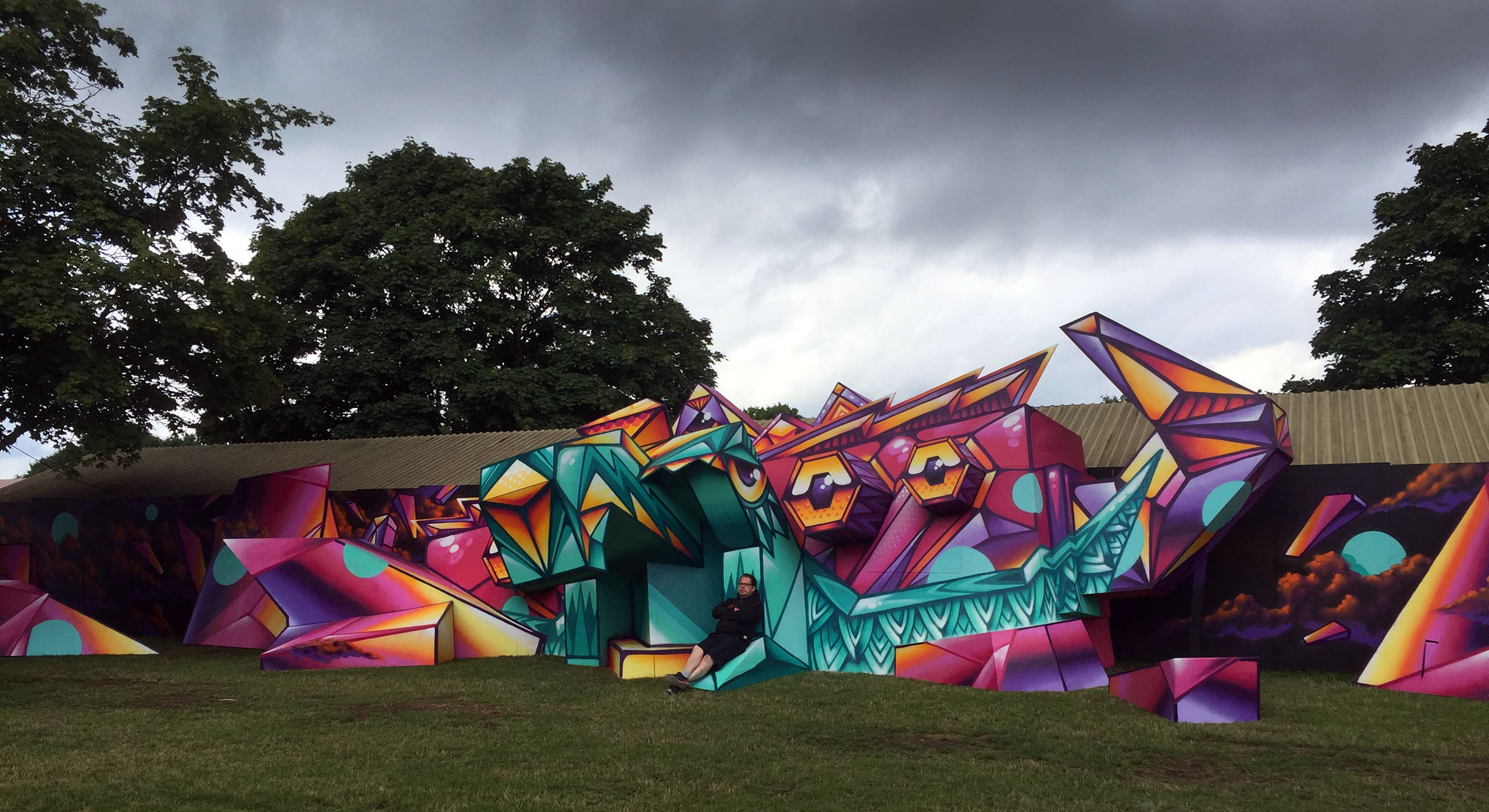 Base23 is an artist living and working in Berlin. His sources of inspiration for his graffiti, ink drawings, canvas works and cardboard installations come from a wide range of sources. These include psychedelic art of the 1960s, underground comics from the 1970s, Japanese robots and robot toy packaging, experiences from his stay in Hong Kong, typography and traditional patterns and fabrics. As an artist, Base23 combines these inspirations into his unique graphic style. His passion for detail can be found in his large murals as well as in his delicate works on paper and canvas. His main intention is to counteract the fleeting way that we observe things in our image-drenched world and instead invite the spectator to stay and contemplate his works.