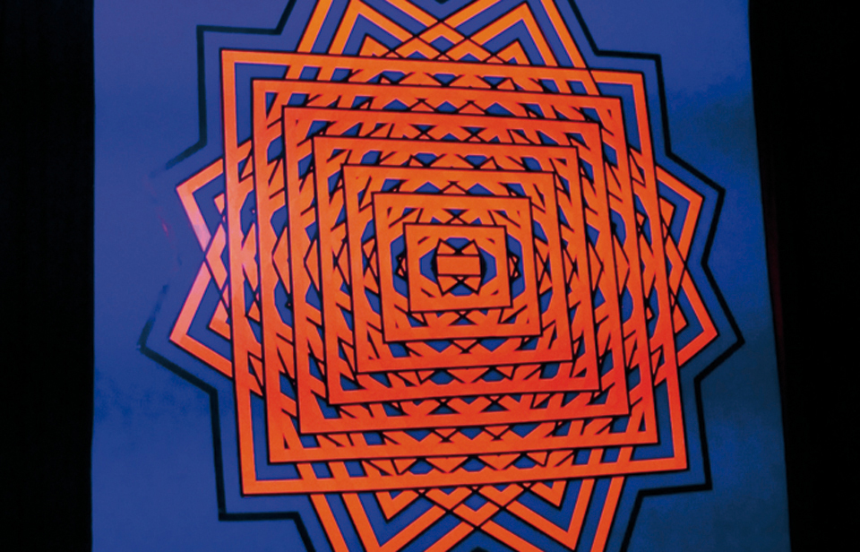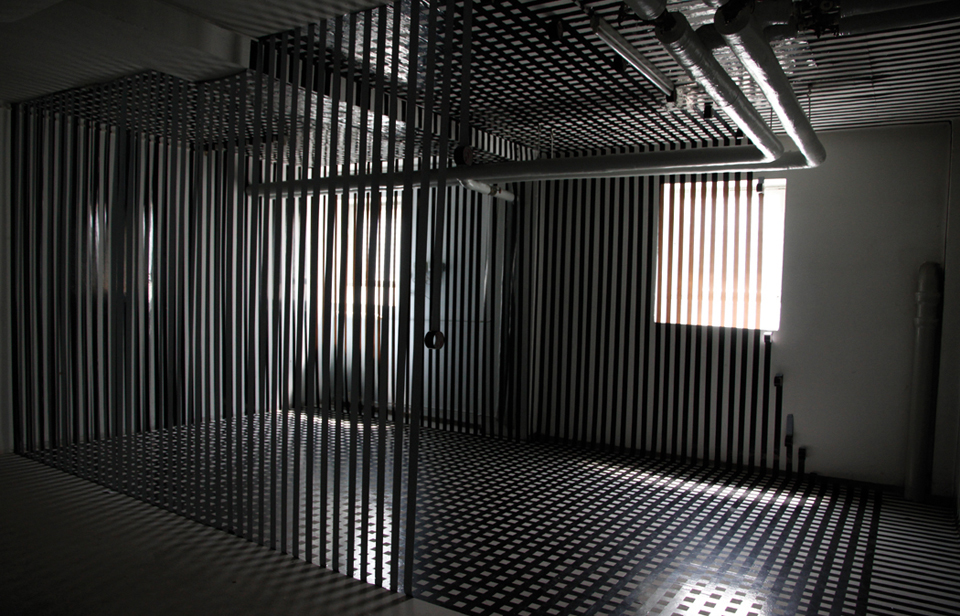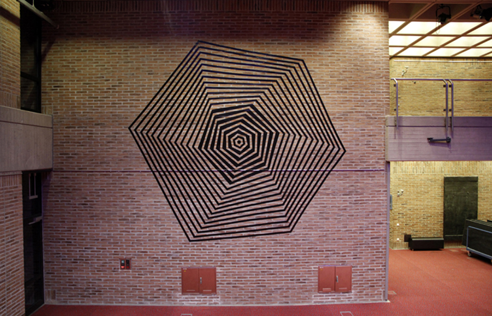 Felix Rodewaldt graduated from the Academy of fine arts in Munich. During his time as a student he became one of the most influential tape artists in Germany. He started working with stencils and found his own fascinating way of pursuing tape art. For THE HAUS - Berlin Art Bang, Felix painted the corridor in the 2nd floor. Inspired by an accordion, the architecture stretches, morphs and twists.