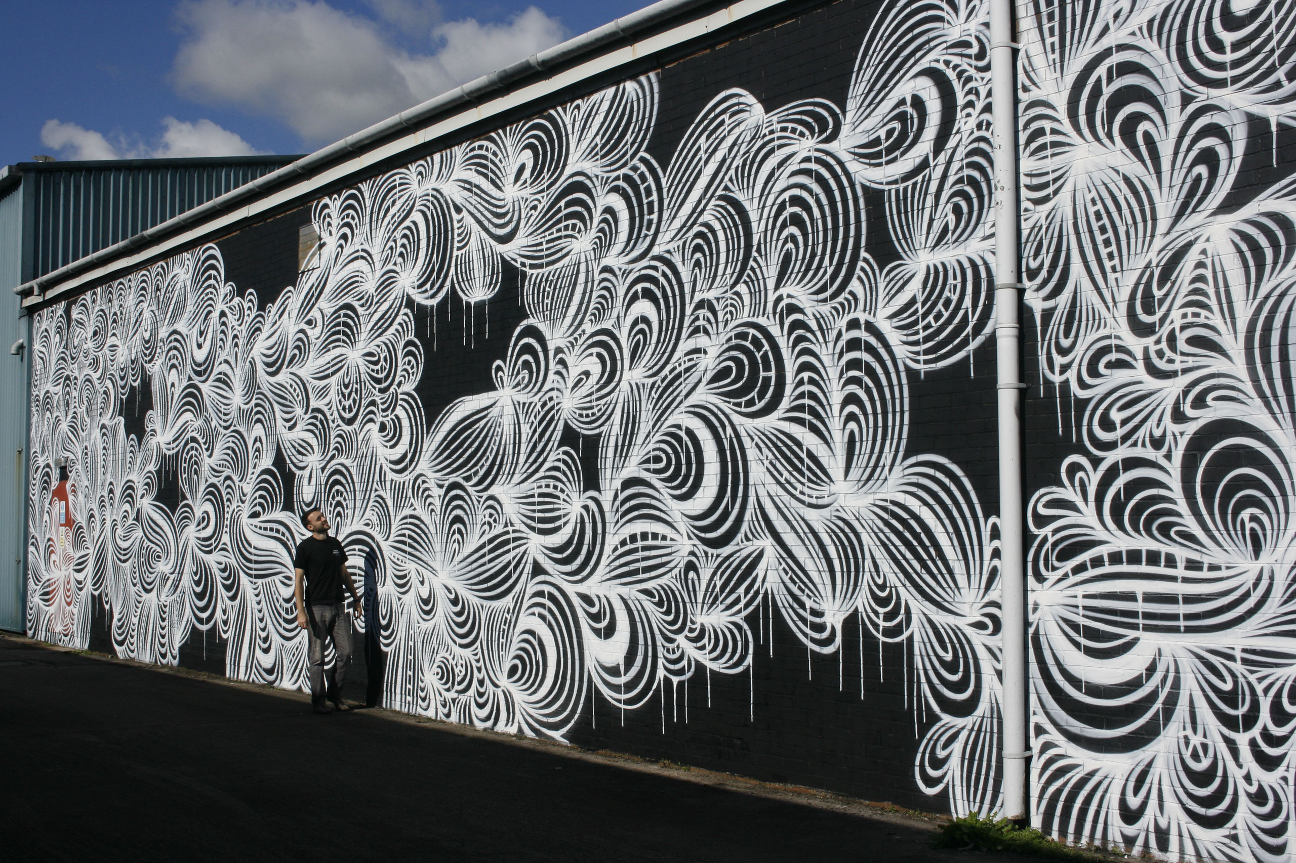 Simon Röhlen (KEF!) was born in Aachen and raised in a small West German town called Übach-Palenberg. He moved to London in 2013 after seeing the vibrant street art scene and feeling that there was a gap that his style could fill. In 2015, he decided to move to Berlin, attracted by its alternative lifestyle. The intricate style of KEF!'s work can be described as abstract graffiti. He often talks about the peace and harmony within the lines he creates and that the mission of his current life is to spread these two aspects. As an artist he works instinctively, taking inspiration from Buddhist teachings and nature. For KEF!, nature contains the utmost beauty on this planet.