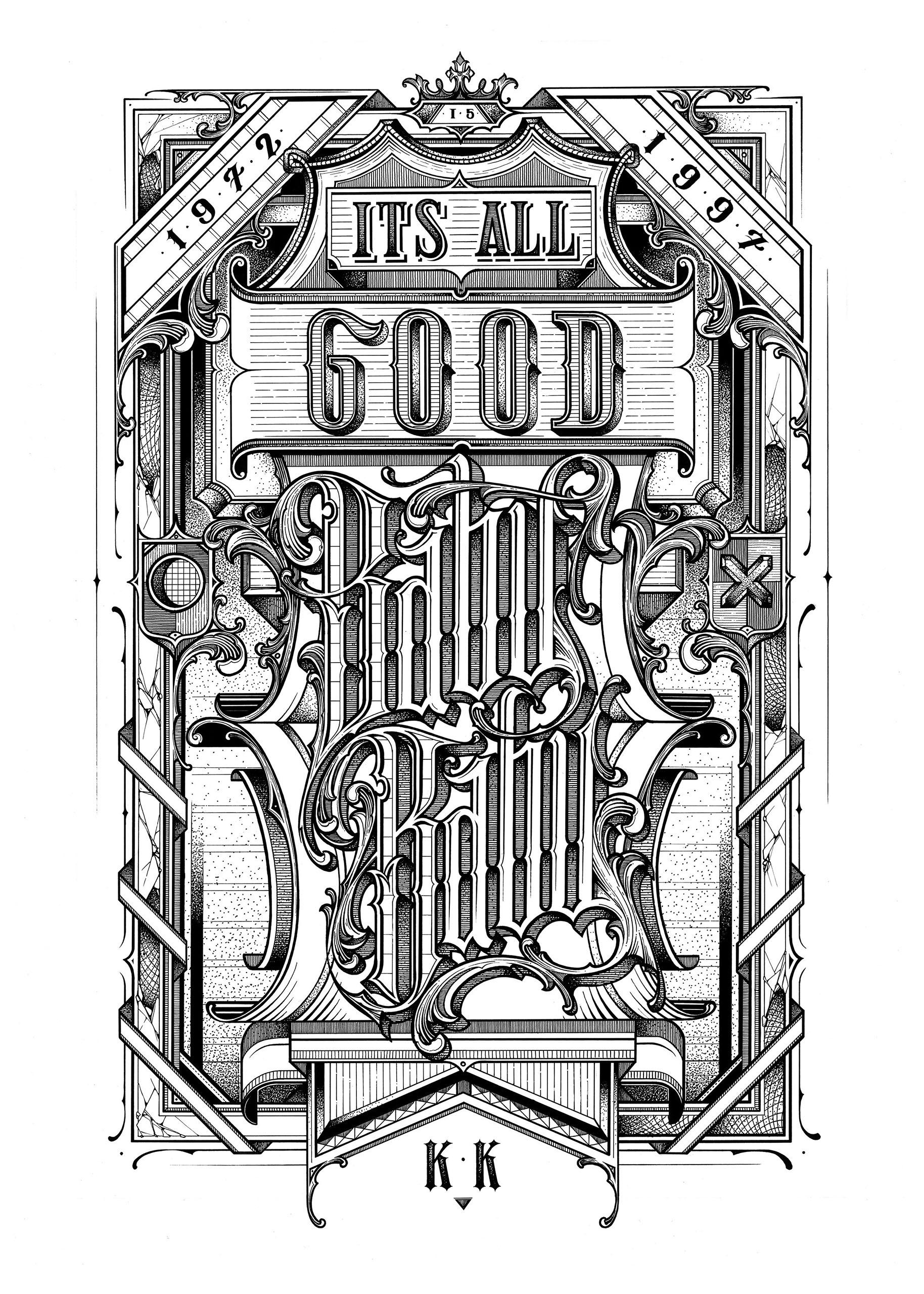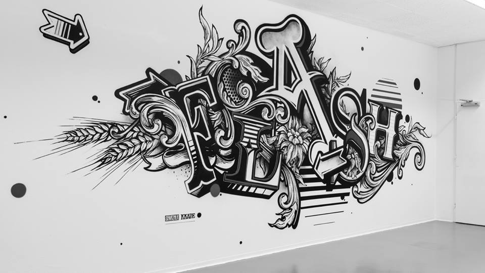 KKADE lives and works in Bern, Switzerland. He focuses on typography. It does not matter whether this is fine liner drawings, mural paintings or graphic design, he does not know any borders in design and realization and is open for individual projects and new ideas. He is part of the collective Schwarzmaler & The Seventh Letter. His style is shaped by art nouveau and baroque elements yet exists in the contemporary urban art context. This is what gives his artwork a unique character that is his very own.