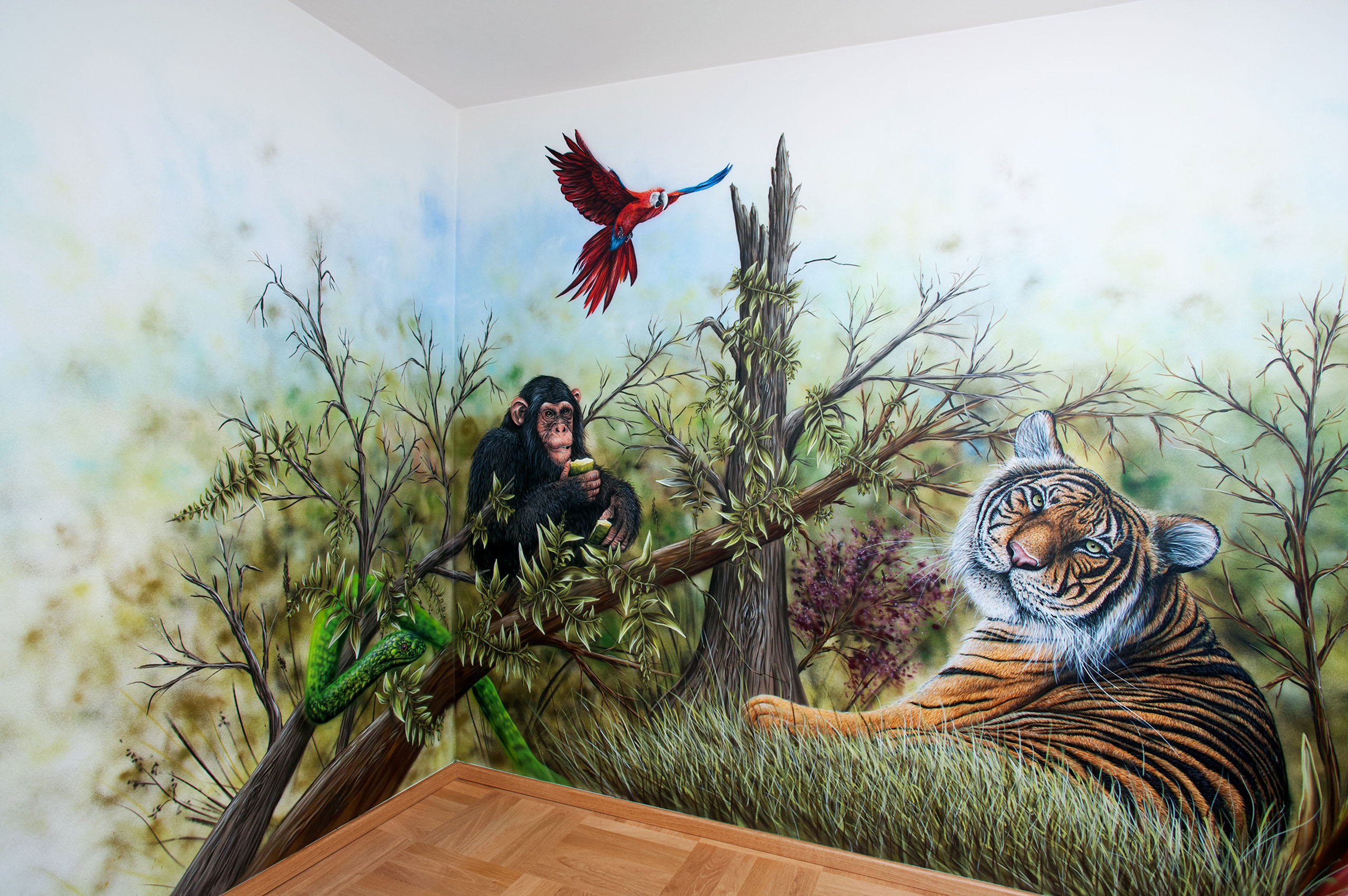 That is the slogan of Lars Oschatz (aka Laurus). Vibrant colors are the base of numerous nature motifs that the graffiti artist creates on almost every surface. By using an original technique of combining spray cans and airbrush, he leaves his marks on mooing milk cans, in wild children’s rooms, on driving dragons as well as in the zoo and animal park of Berlin. He shares his know-how in international workshops.