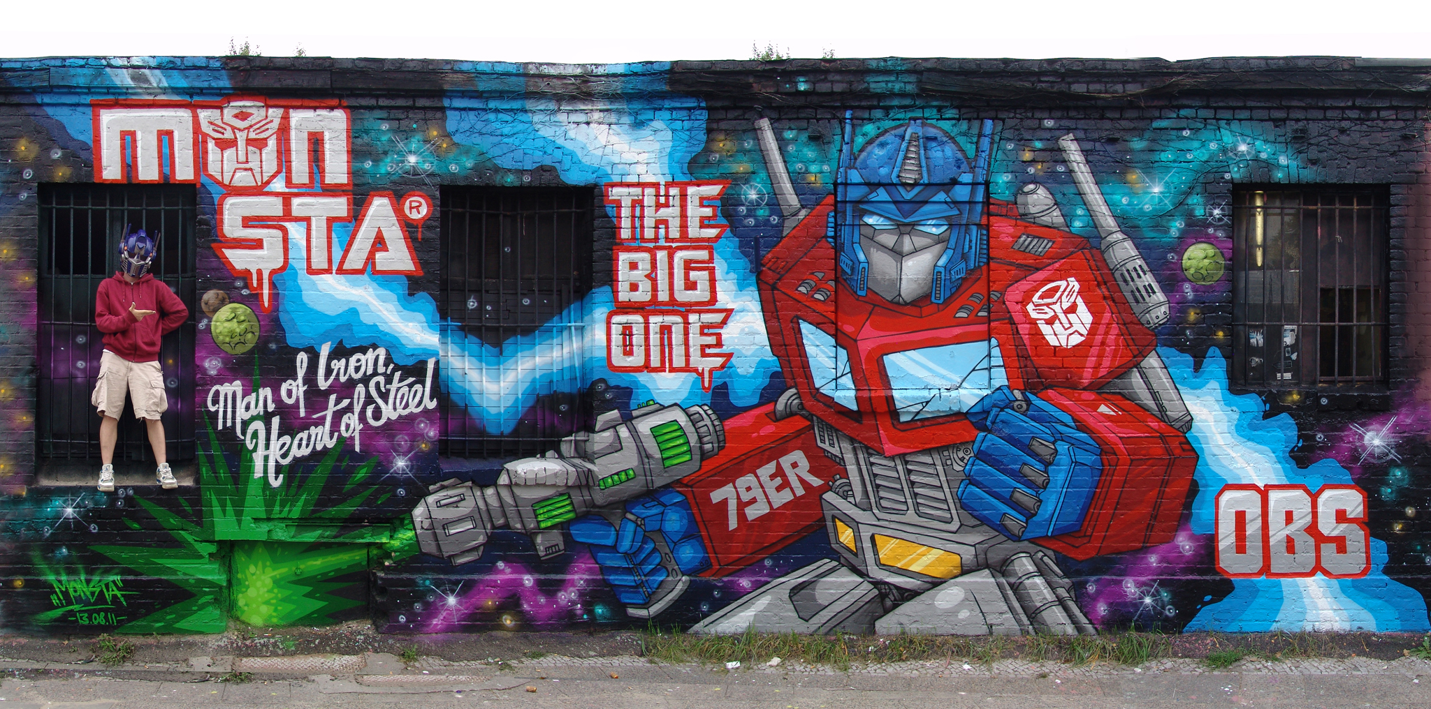 Monsta179 has been an active graffiti writer since 1994 and is a member of the OBS crew. Mainly he paints in the Berlin-Brandenburg area, but also if he is abroad. Over the years, he has used different names but always paints for the OBS crew. He creates classic graffiti, letters, characters and backgrounds. He prefers to create colorful and clear artwork with a lot of details. He has a passion for comics, which you can see in his graffiti. Apart from creating street art, he also does commissioned work, though this work has nothing in common with his graffiti. He clearly separates those parts of his life. His work has never been exhibited and is hard to find online. THE HAUS is the first public exhibition he is participating in. From now on he plans to attend more art and graffiti projects.