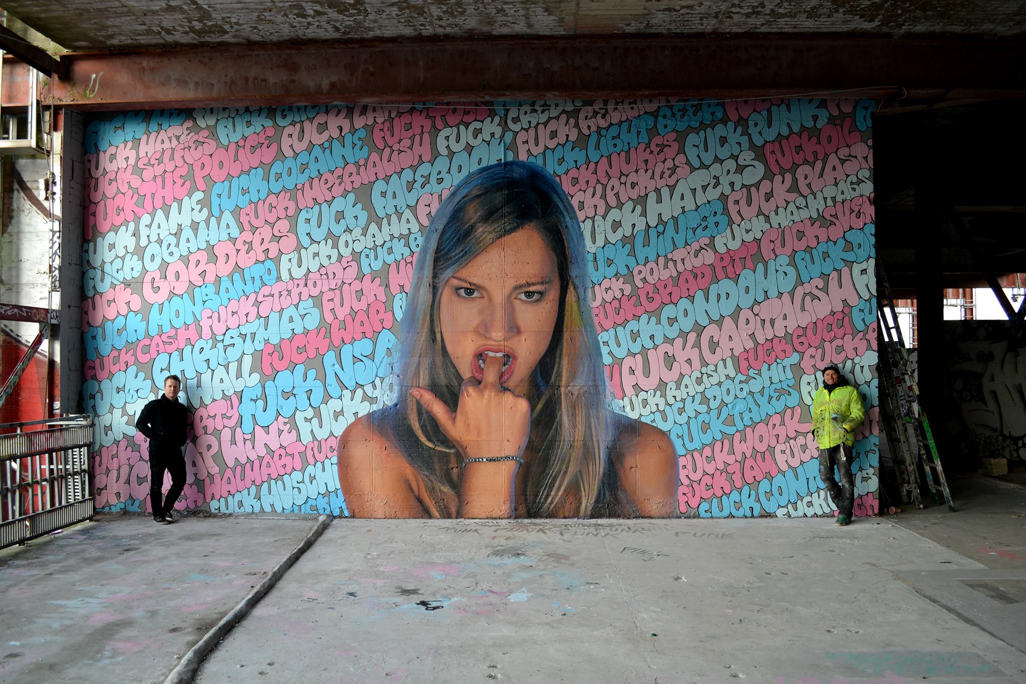 These two first met at an abandoned spy station in Berlin and quickly became friends. Even though they come from two different countries separated by a vast distance, they grew up with nearly identical cultural influences. Products of an ever spreading, homogenized, cultural malaise. It is this dulling pop culture that they reference in their work. The blurring of reality and commerce. Always in focus is the one weapon that we have against the power structures that wish to control and dominate us. Paint.