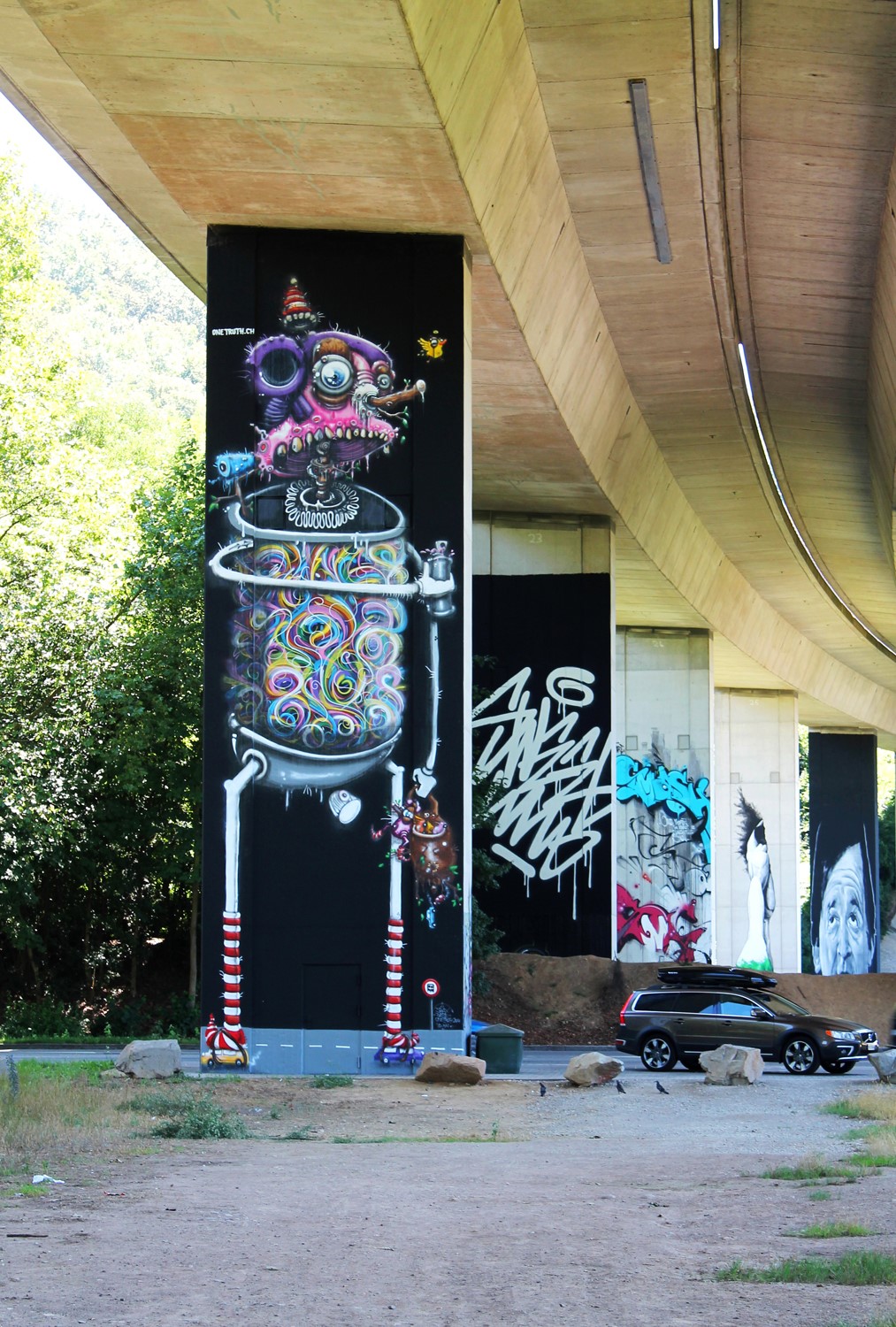 They are part of Swiss graffiti culture and are internationally renowned. They have worked with legends like Cope2 and Bates. One Truth do not know any limits in their creativity, arrangements and visualization. They stand for innovative ideas and precise handwork in Swiss quality with their very own style.