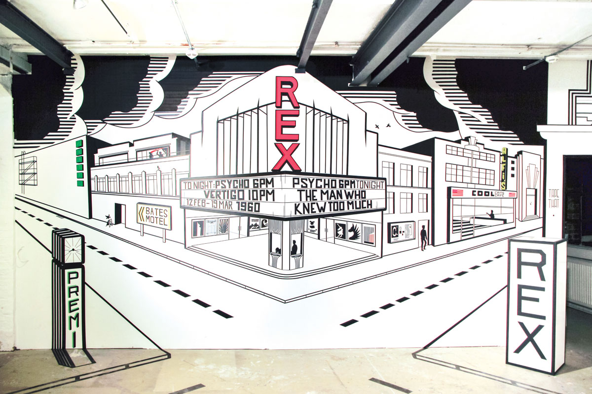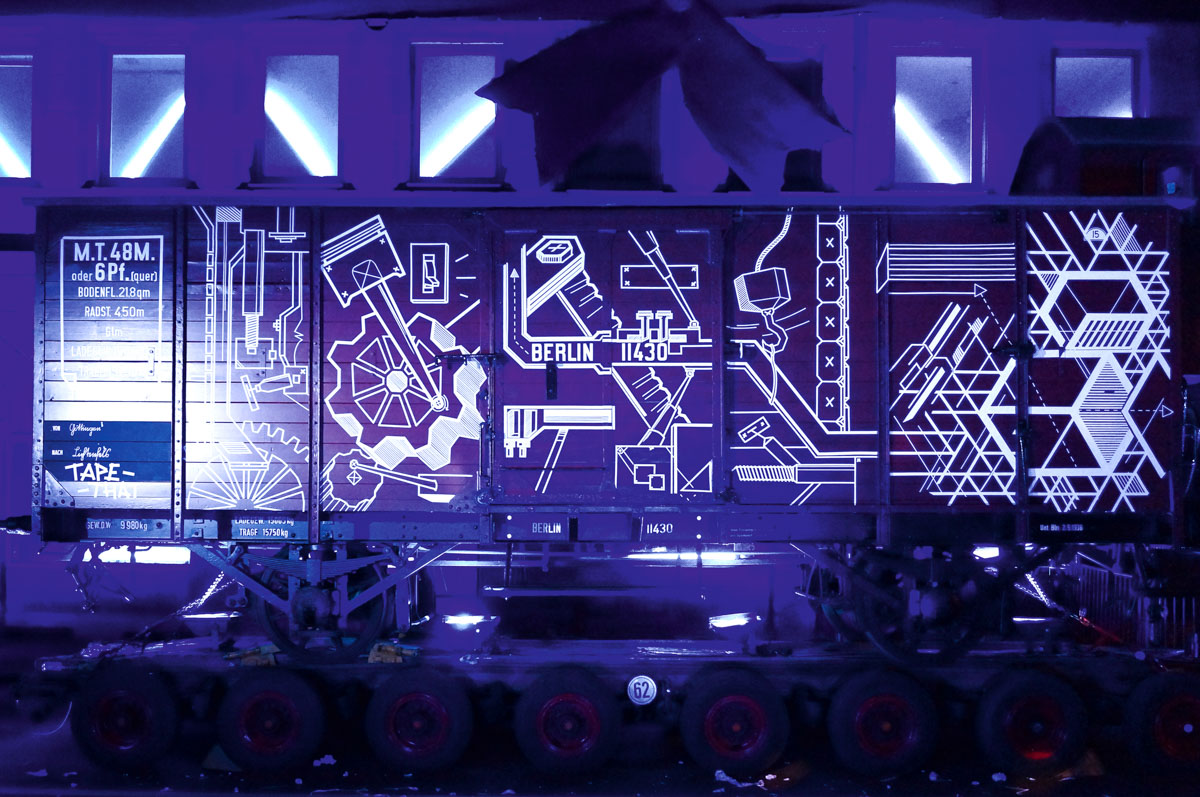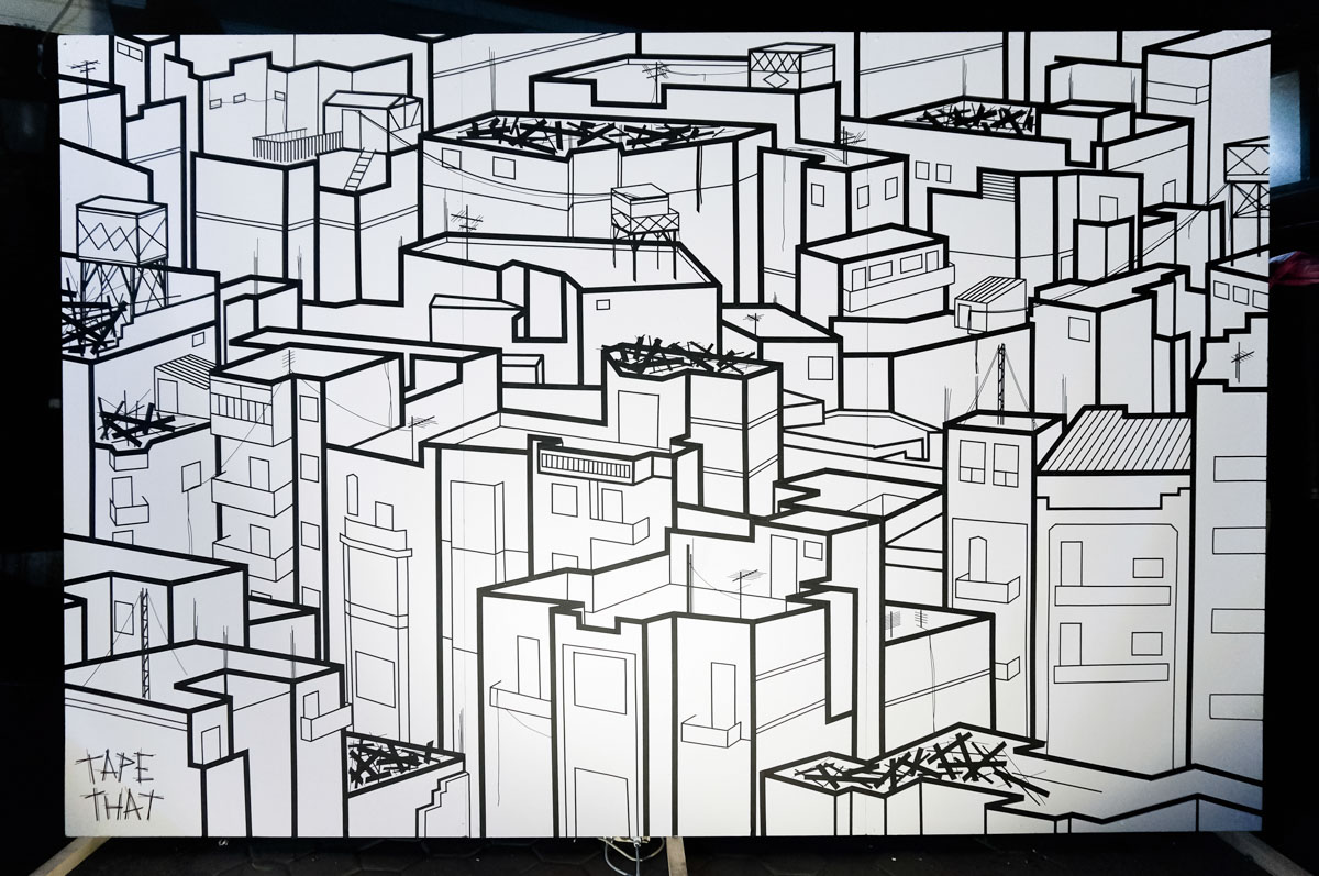 Their works can be found in a variety of places, such as underground nightclubs, abandoned buildings, showrooms and galleries. Though based in Berlin, Tape That is active all around the globe with recent and ongoing projects in Peru, Egypt, Spain, Qatar, Bulgaria, Cambodia, Vietnam, China, Luxembourg, Austria, Sweden, the US and the UK.