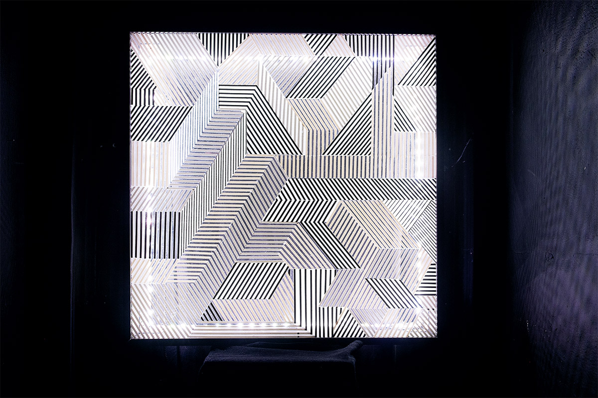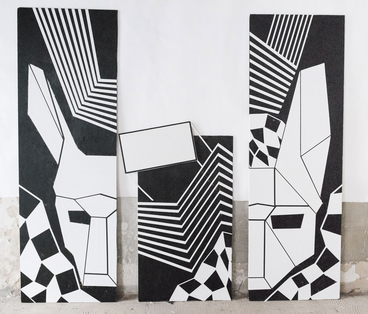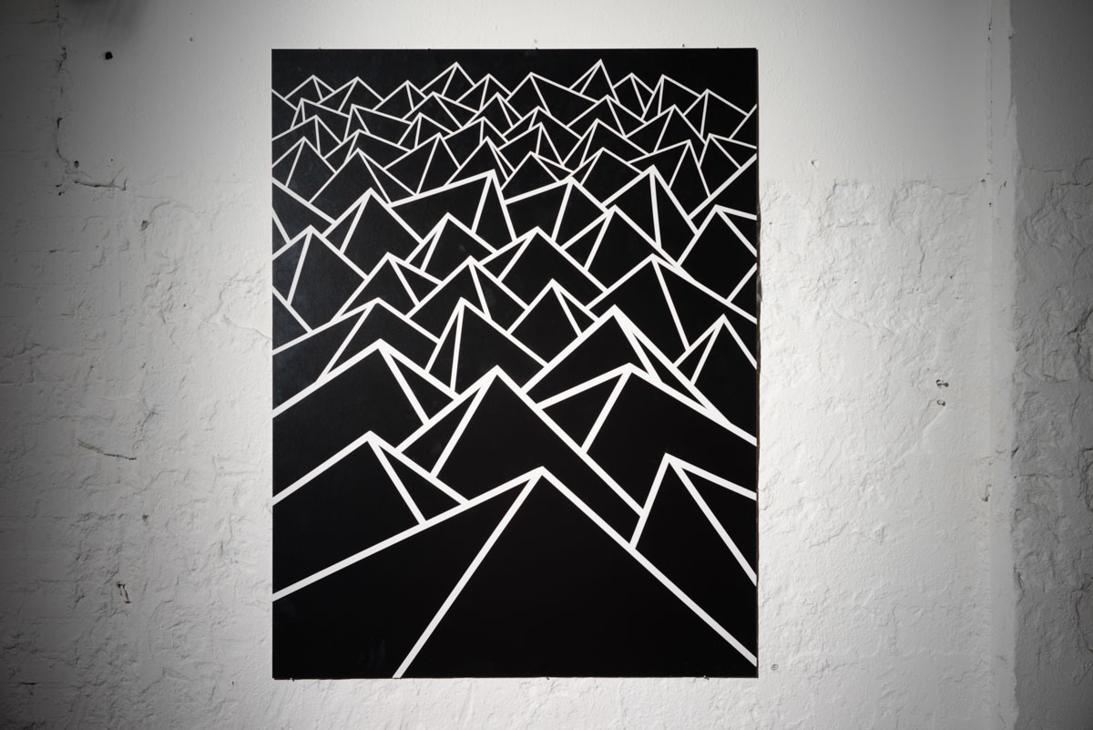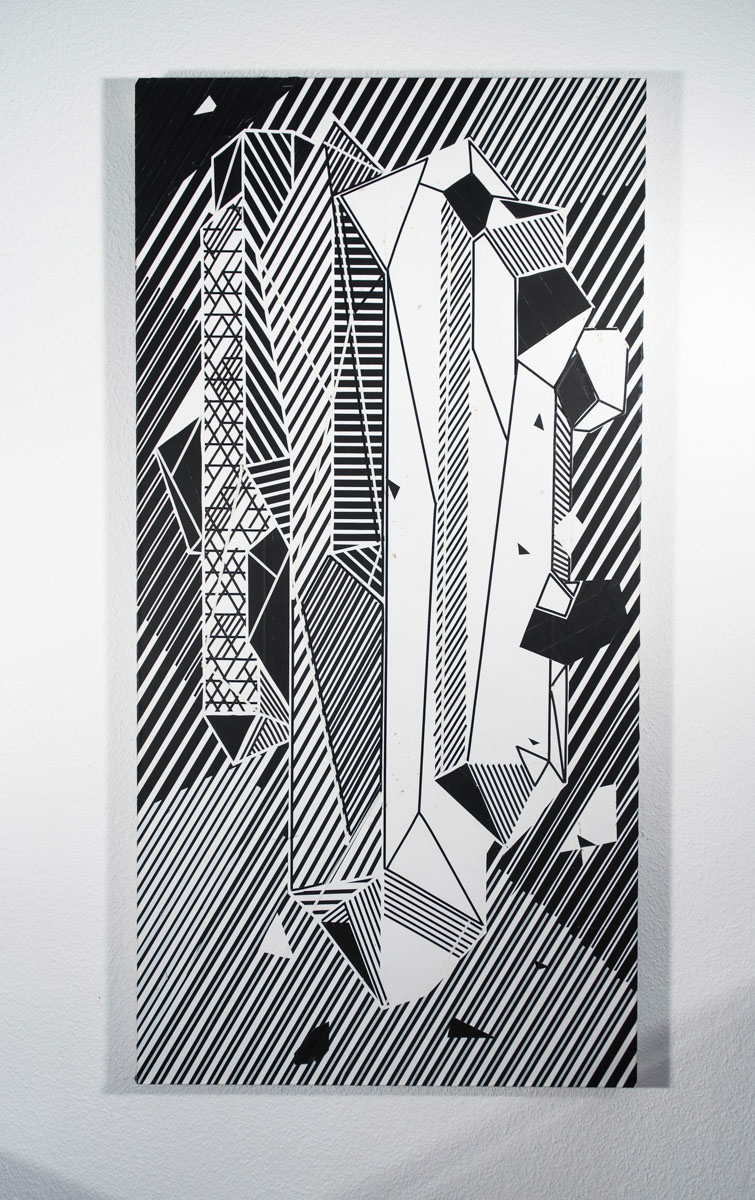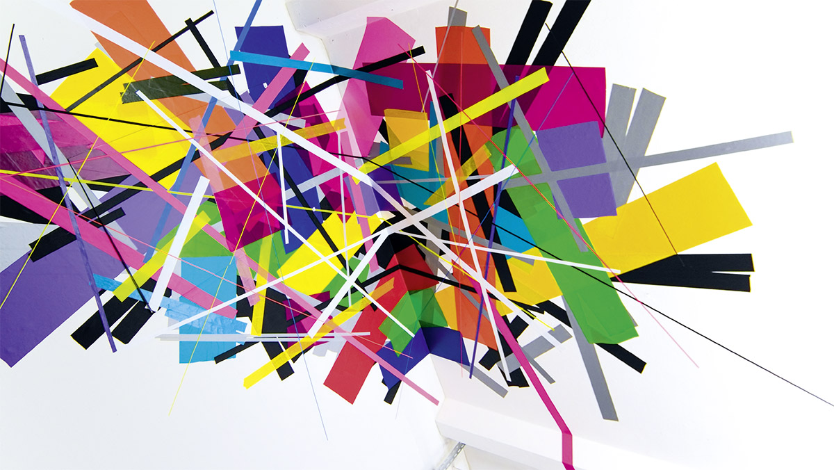 The works are essentially created out of adhesive tape which every member discovered independently from each other in their creative processes. Inspired by the possibility of creating something new out of an everyday object, they use tape to create complex and intricate structures or colorful tape and light installations as well as minimalistic black and white murals and room-installations.